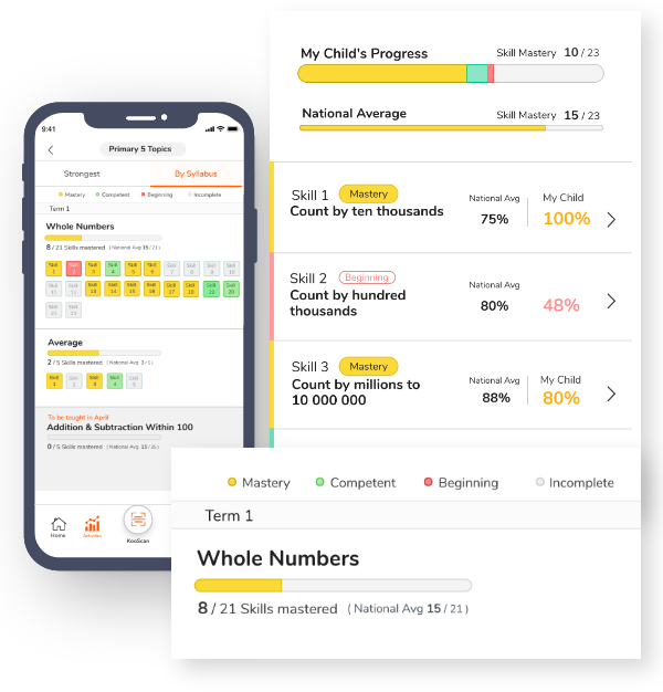KooBits has the answer. Our system encourages daily revision to help students get more familiar with the concepts. We also have a powerful heuristics mastery tool. It trains students to solve the toughest word problems set by MOE. If your child needs help on a topic urgently, our animated tutorials are ready to guide them towards the solution. Use KooBits to give your child the best chance to graduate with top scores!
